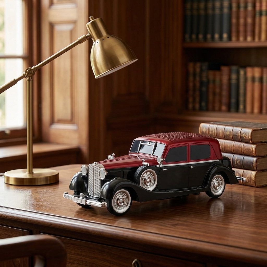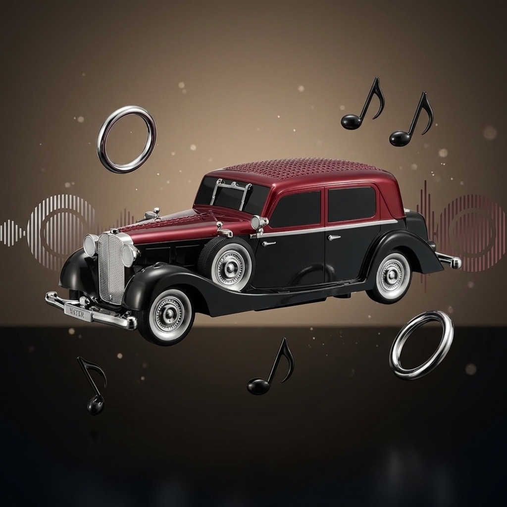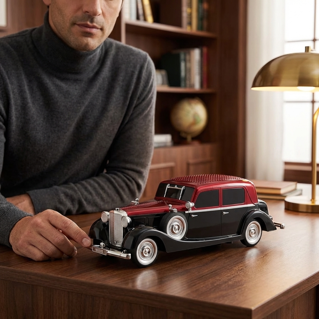 A handcrafted vintage sedan reborn as a Bluetooth speaker. Rolling wheels, working LED party lights, and a warm, room-filling 5W sound. Sits on your shelf like a memory you forgot you had.